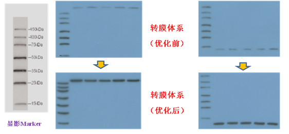 (2)????? 高分子量(>120 kDa)以及低分子量(<10 kDa)轉(zhuǎn)膜優(yōu)化:采用優(yōu)化的轉(zhuǎn)膜條件以及特有的轉(zhuǎn)膜緩沖液實(shí)現(xiàn)高分子量以及低分子量的有效轉(zhuǎn)膜。